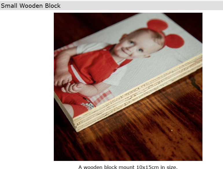 Small Wooden Block – A wooden block mount 10 x 15cm in size.